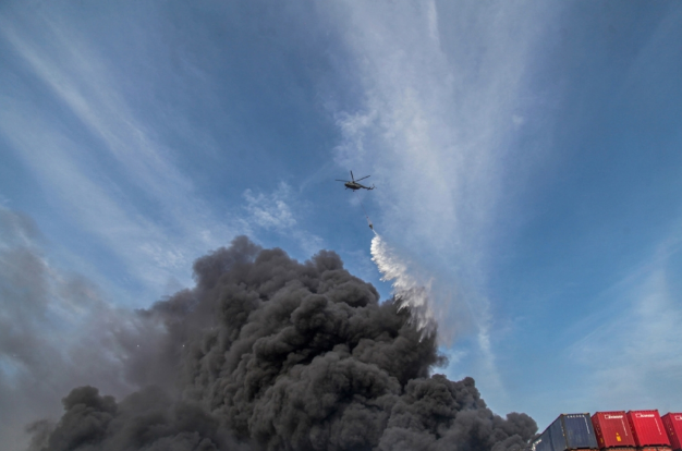 وأوضح مراسل التلفزيون الرسمي في المكان «تمت السيطرة على الحريق لكن لم يخمد بعد» فيما يتصاعد دخان كثيف أسود من ورائه.