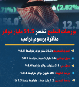 بورصات الخليج تخسر 51.5 مليار دولار بعد فرض رسوم ترامب الجمركية