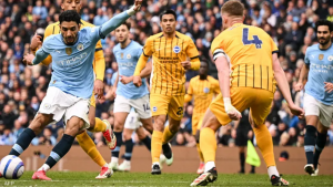 تعادل فريقا مانشستر سيتي ضد برايتون 2-2 في المباراة التي أقيمت بينهما مساء اليوم السبت على ملعب الاتحاد ضمن منافسات الجولة 29 من بطولة الدوري الإنجليزي الممتاز للموسم الحالي 2024-25.