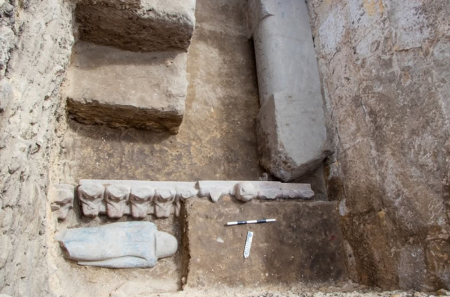 وأوضح أنه توجد أيضا رؤوس تماثيل في مستوي أعلى من باقي التماثيل تمثل زوجات صاحب المقبرة الجالسين في المنتصف وعلى يساره تمثالين فاقدي الرؤوس عثر أمامها على تمثال آخر من الجرانيت الأسود مقلوب على الوجه بارتفاع 1.35 متراً.