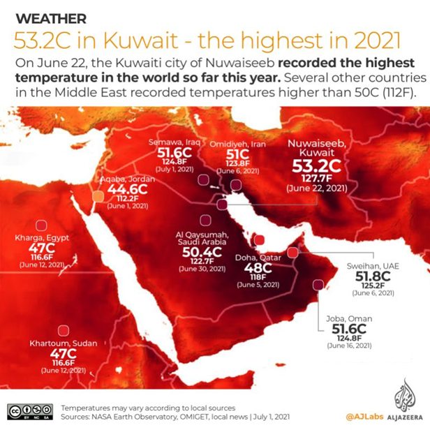 - موجات الحر الطويلة التي تضرب منطقة الخليج العربي.