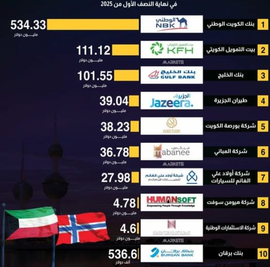 • بنك الكويت الوطني: 534.33 مليون دولار.